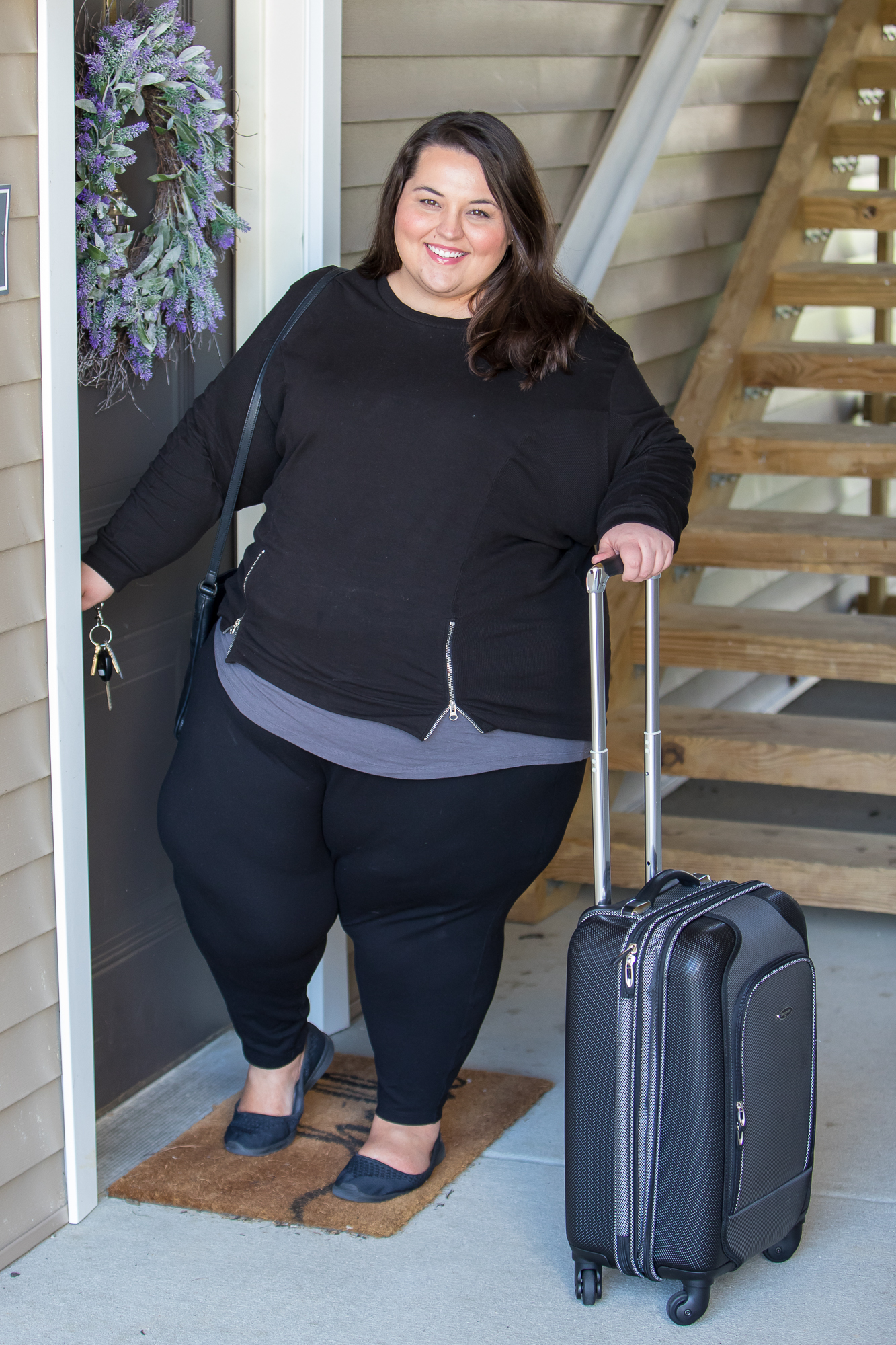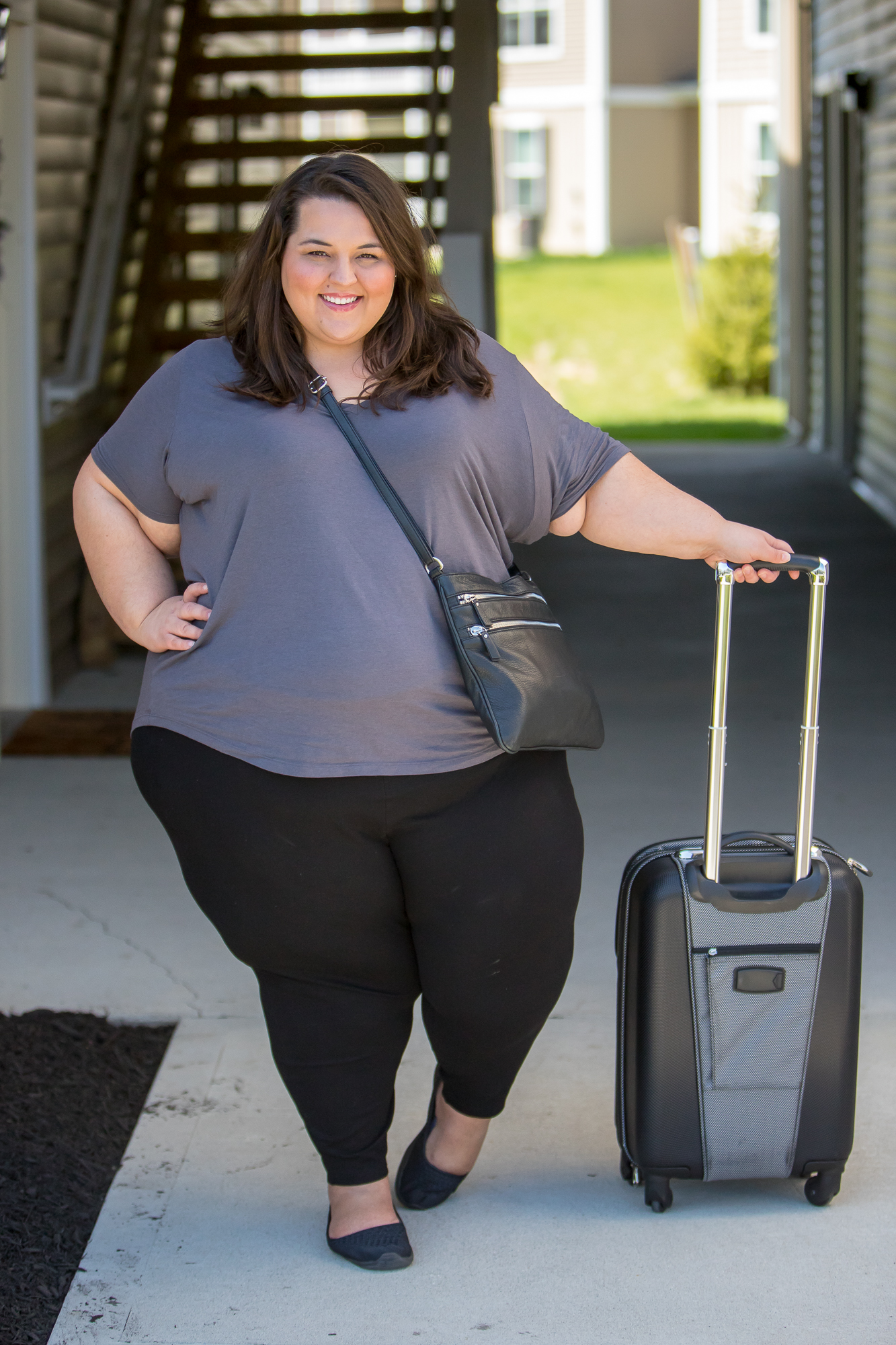 If you follow me on Instagram, you already know that I travel a LOT. I like to be comfy while flying, and I wear layers to accommodate for fluctuating temperatures. I love pairing the tee with the pullover from Universal Standard when I need an extra layer. Ponte leggings and comfy shoes are also a go-to for travel day.