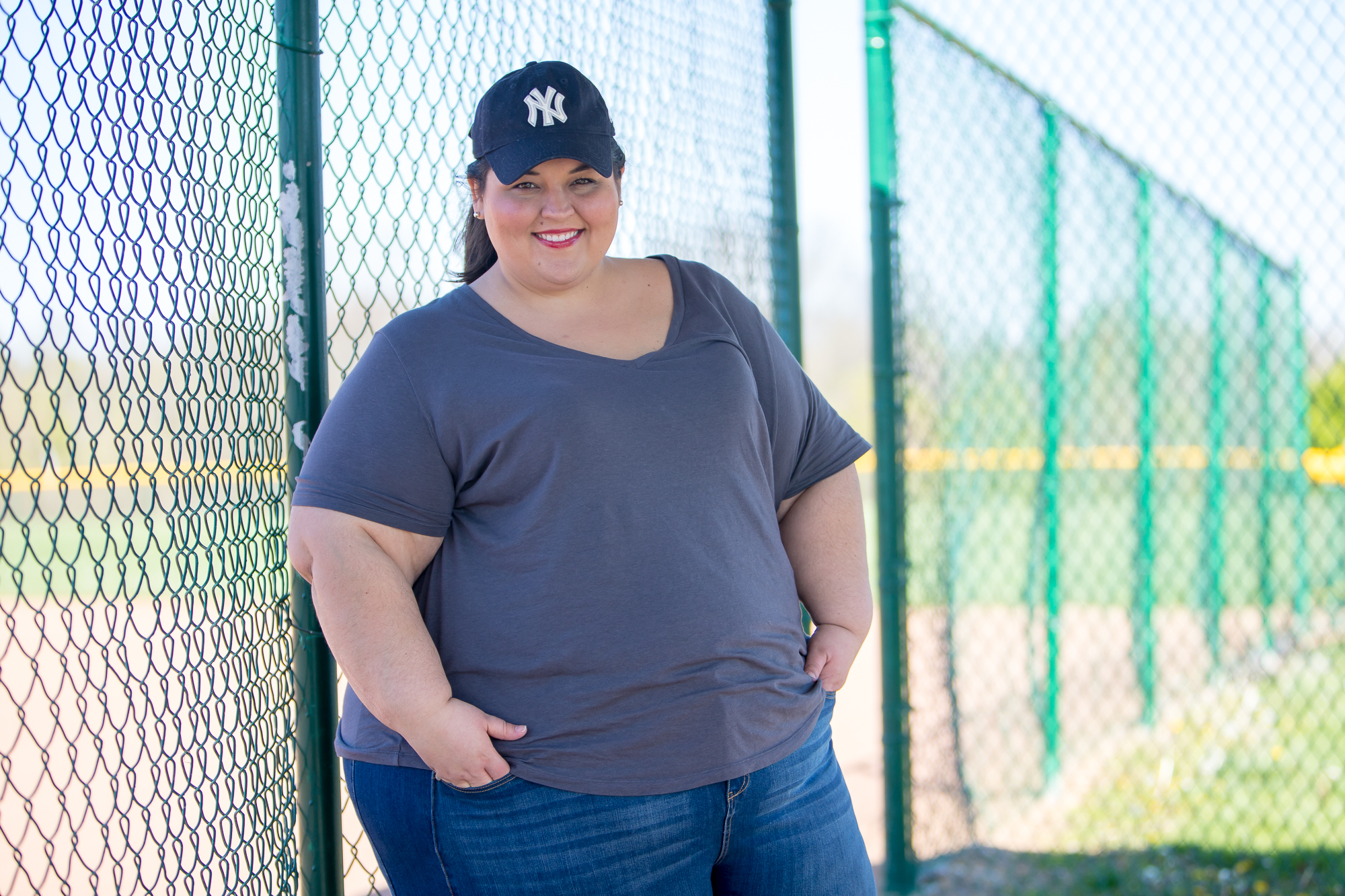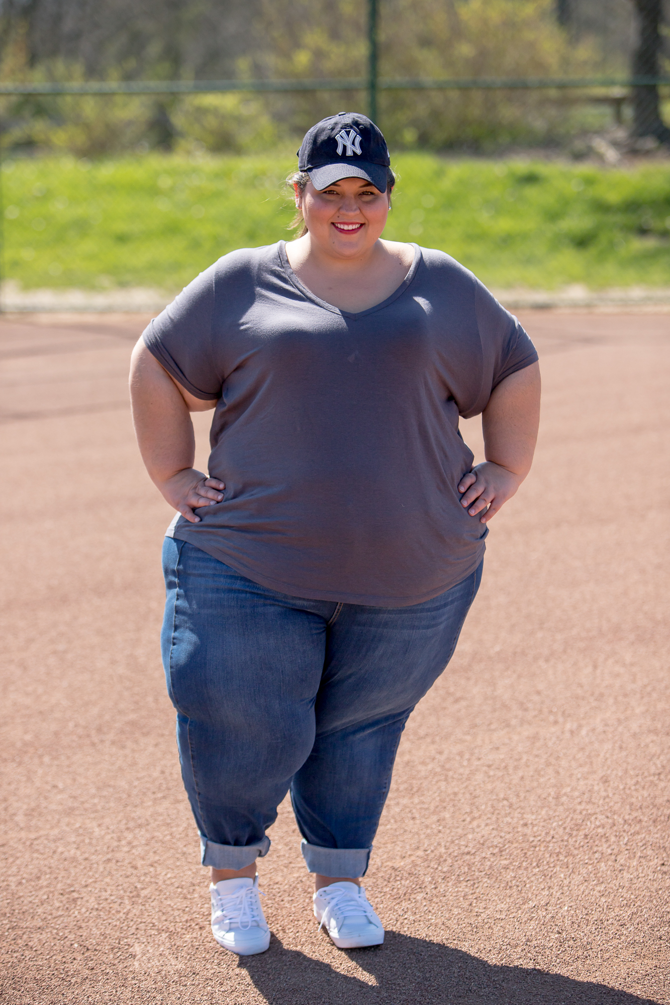 Yankees Hat (Similar): Here | Tee: Here | Jeans: Here (RWN by Rawan via Gwynnie Bee) | Sneakers (Similar): Here